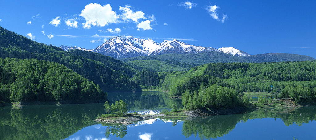北海道大雪山に降った雨と雪がゆっくりとゆっくりと水になったのが、